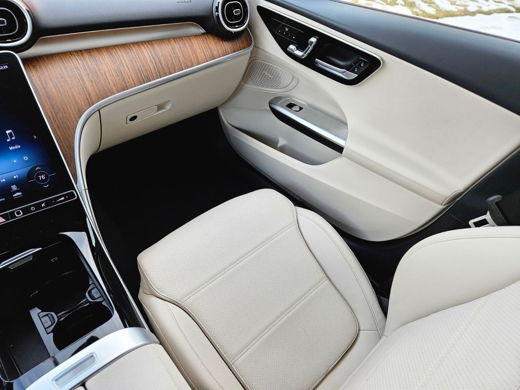 4MATIC®, 11.9" Center Touchscreen Display, 18" 5-Spoke Wheels, 4-way Power Driver's Lumbar Support, 4-Wheel Disc Brakes, ABS brakes, Alloy wheels, Anti-whiplash front head restraints, Apple CarPlay®/Android Auto®, Auto High-beam Headlights, Auto tilt-away steering wheel, Auto-dimming door mirrors, Auto-dimming Rear-View mirror, Black Fabric Headliner, Brake assist, Bumpers: body-color, Child-Seat-Sensing Airbag, Compass, Delay-off headlights, Driver door bin, Driver vanity mirror, Dual front impact airbags, Dual front side impact airbags, Electronic Stability Control, Emergency communication system: Mercedes-Benz Emergency Call Service, Exterior Parking Camera Rear, Front anti-roll bar, Front Bucket Seats, Front Center Armrest, Front reading lights, Fully automatic headlights, Garage door transmitter: HomeLink, Genuine wood dashboard insert, Heated door mirrors, Heated front seats, Illuminated entry, Knee airbag, Low tire pressure warning, MB-Tex Upholstery, Occupant sensing airbag, Outside temperature display, Overhead airbag, Overhead console, Panic alarm, Passenger door bin, Passenger vanity mirror, Power adjustable front head restraints, Power door mirrors, Power Heated Front Seats w/Memory, Power moonroof, Power passenger seat, Rain sensing wipers, Rear anti-roll bar, Rear fog lights, Rear reading lights, Rear seat center armrest, Security system, Speed control, Split folding rear seat, Tachometer, Telescoping steering wheel, Tilt steering wheel, Trip computer, Turn signal indicator mirrors, Variably intermittent wipers.