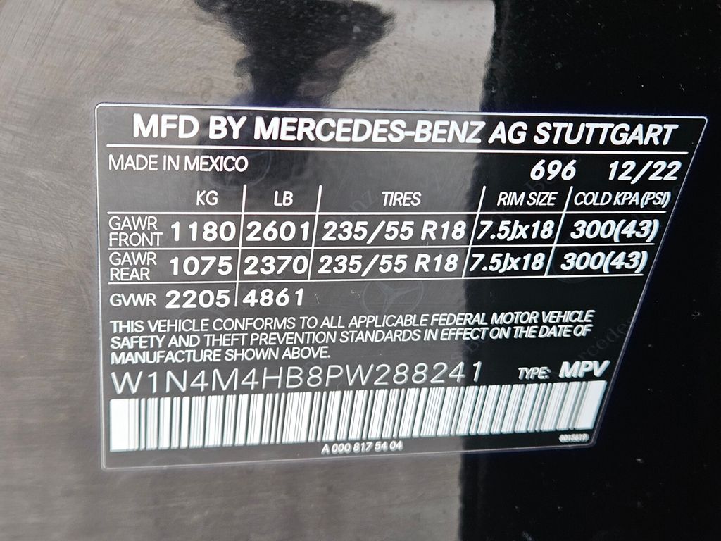 10.25" Digital Instrument Cluster, 10.25" Media Display w/Touchscreen, 115V Outlet, 4-Wheel Disc Brakes, ABS brakes, Active Parking Assist, Alloy wheels, Apple CarPlay®/Android Auto®, Auto-Dimming Rearview & Driver-Side Mirrors, Axle Ratio: TBD, Black Headliner, Brake assist, Bumpers: body-color, Child-Seat-Sensing Airbag, Delay-off headlights, Driver door bin, Driver vanity mirror, Dual front impact airbags, Dual front side impact airbags, Electronic Stability Control, Emergency communication system: Mercedes-Benz Emergency Call Service, Exterior Parking Camera Rear, Front anti-roll bar, Front Bucket Seats, Front Center Armrest, Front Comfort Seats, Front fog lights, Front reading lights, Fully automatic headlights, Hands-Free Access, Heated door mirrors, Heated Front Seats, Heated Steering Wheel, Illuminated entry, Inductive Wireless Charging & NFC Pairing, Keyless-Go, Knee airbag, Low tire pressure warning, MB-Tex Upholstery, Non-Flattened Steering Wheel, Occupant sensing airbag, Outside temperature display, Overhead airbag, Overhead console, Panic alarm, Panorama Roof, Parking Assistance Package, Passenger vanity mirror, Power door mirrors, Power Liftgate, Power passenger seat, Power-Folding Side Mirrors, Premium Package, Rain sensing wipers, Rear anti-roll bar, Rear fog lights, Rear reading lights, Rear window wiper, Roof rack: rails only, Security system, Speed control, Split folding rear seat, Spoiler, Surround View System, Tachometer, Telescoping steering wheel, Tilt steering wheel, Trip computer, Turn signal indicator mirrors, Variably intermittent wipers, Wheels: 7.5J x 18" Twin 5-Spoke.