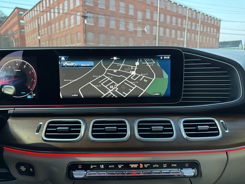 4-Wheel Disc Brakes, ABS brakes, Alloy wheels, AMG® Line Body Styling, AMG® Line Exterior, Anti-whiplash front head restraints, Apple CarPlay®/Android Auto®, Auto High-beam Headlights, Auto tilt-away steering wheel, Auto-dimming door mirrors, Auto-dimming Rear-View mirror, Black Roof Rails, Brake assist, Bumpers: body-color, Burmester® Surround Sound System w/Dolby Atmos, Compass, Delay-off headlights, Driver door bin, Driver vanity mirror, Dual front impact airbags, Dual front side impact airbags, Electronic Stability Control, Emergency communication system: eCall Emergency System, Exclusive Trim, Exterior Parking Camera Rear, Front anti-roll bar, Front Bucket Seats, Front Center Armrest, Front reading lights, Fully automatic headlights, Garage door transmitter: HomeLink, Heated door mirrors, Heated Front Seats, Heated front seats, Heated Washer System, HERMES Communications Module LTE, High-Gloss Black Elements, Illuminated entry, Knee airbag, Leather steering wheel, Low tire pressure warning, Macchiato Headliner, MB Navigation, MB-Tex Seat Trim, Night Package, Occupant sensing airbag, Outside temperature display, Overhead airbag, Panic alarm, Passenger door bin, Passenger vanity mirror, Perforated Brake Discs, Power adjustable front head restraints, Power door mirrors, Power Front Seats, Power Liftgate, Power moonroof, Power passenger seat, Rain sensing wipers, Rear anti-roll bar, Rear fog lights, Rear reading lights, Rear seat center armrest, Rear window wiper, Security system, Speed control, Speed-Sensitive Wipers, Split folding rear seat, Spoiler, Tachometer, Telescoping steering wheel, Tilt steering wheel, Trip computer, Turn signal indicator mirrors, Ventilated Front Seats, Wheels: 20" AMG® 5-Spoke w/Black Accents, Wireless Charging, Wireless Smartphone Integration.