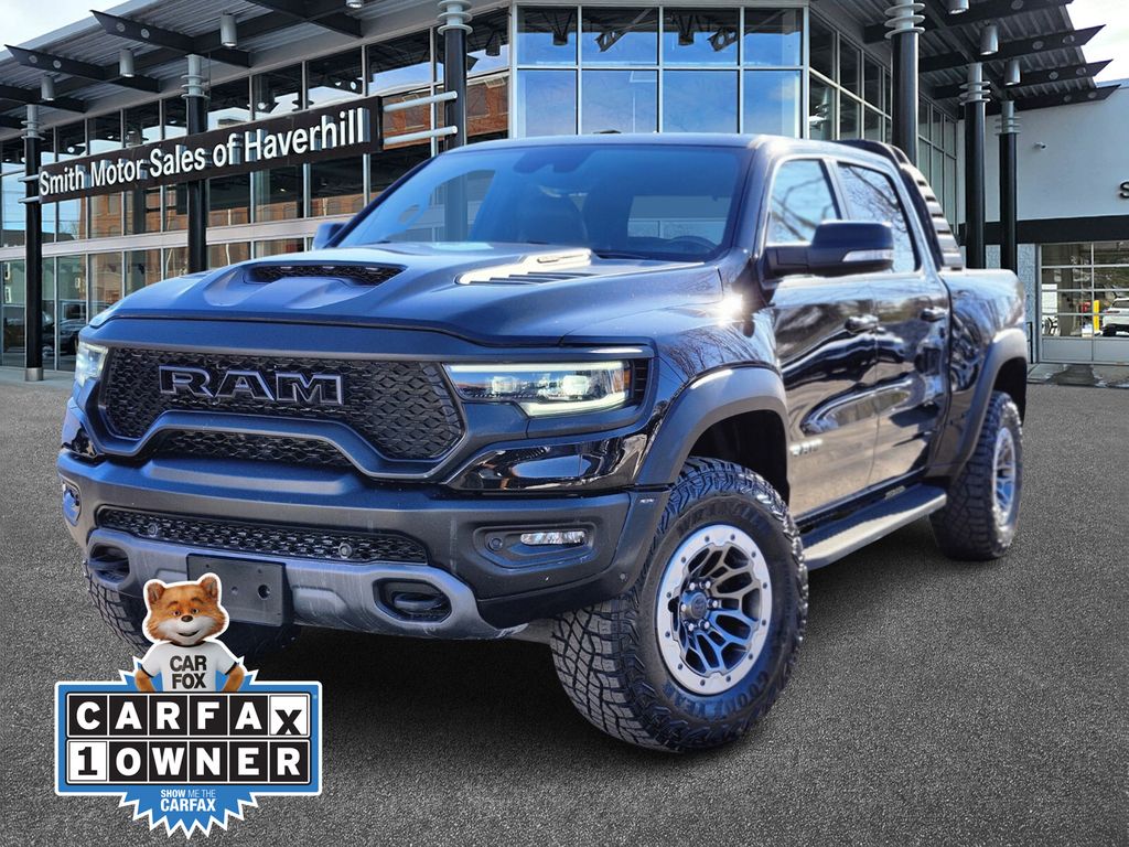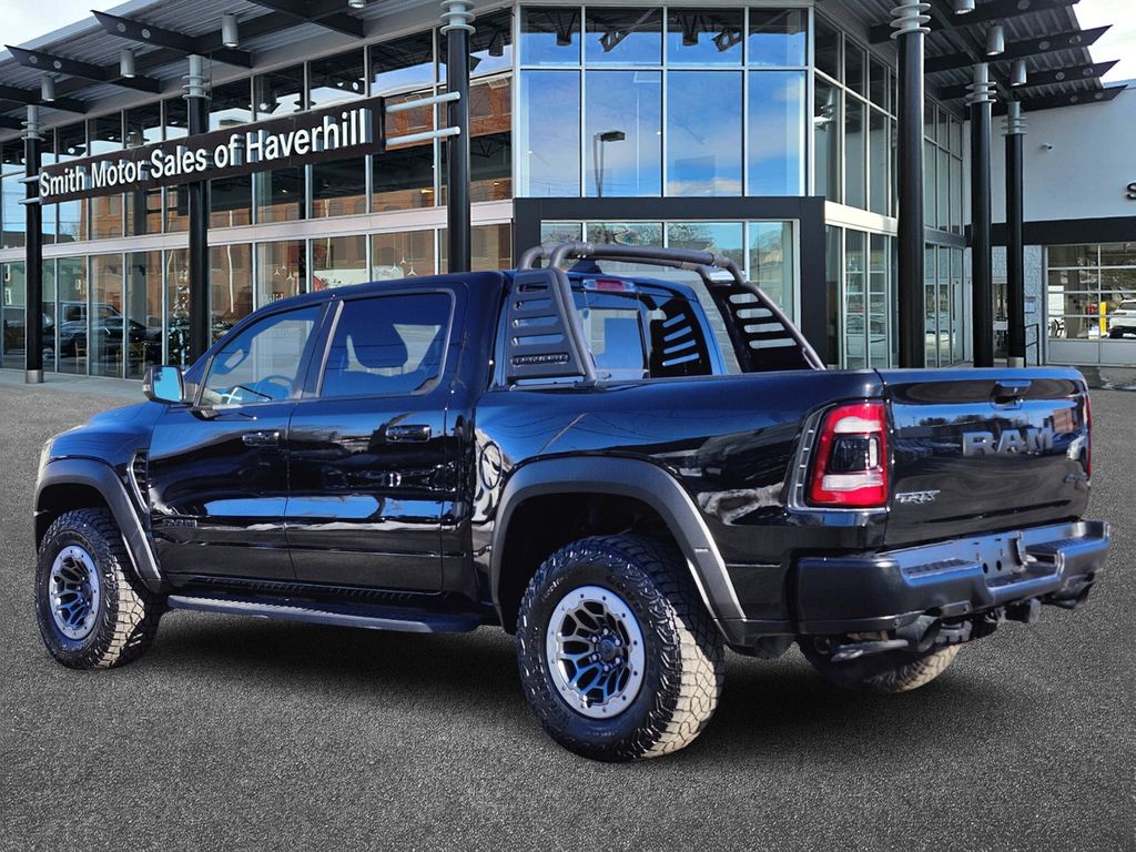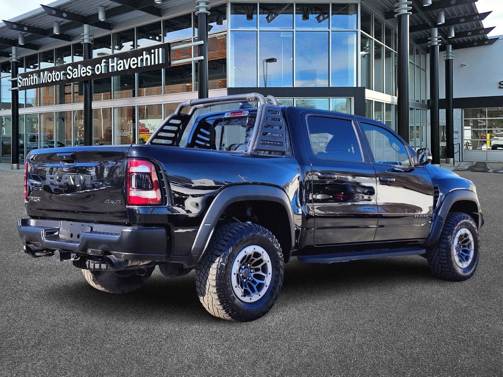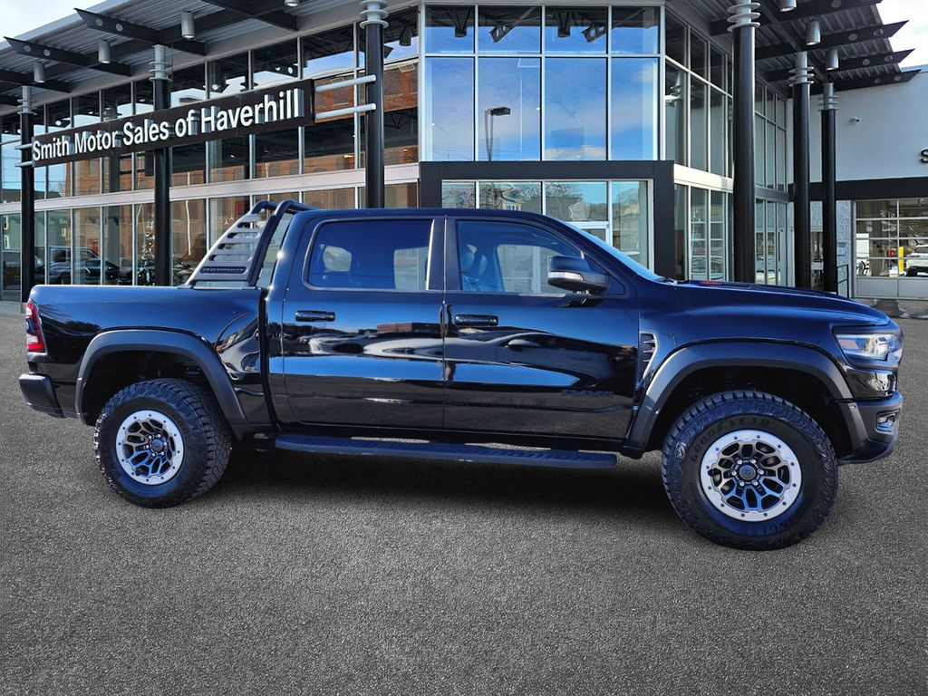 10 Speakers, 3.55 Rear Axle Ratio, 4 Way Front Headrests, 4-Wheel Disc Brakes, ABS brakes, Adaptive suspension, Alloy wheels, AM/FM radio: SiriusXM with 360L, Apple CarPlay/Android Auto, Auto High-beam Headlights, Auto-dimming door mirrors, Auto-dimming Rear-View mirror, Bed Utility Group, Black Exterior Mirrors, Blind Spot & Cross Path Detection, Body Color Door Handles, Brake assist, Bucket Seats, Cloth/Vinyl Bucket Seats, Compass, Delay-off headlights, Dome Dual LED Reading Lamp, Driver door bin, Driver/Passenger Wrapped Assist Handles, Dual front impact airbags, Dual front side impact airbags, Dual-Pane Panoramic Sunroof, Electronic Stability Control, Emergency communication system: SiriusXM Guardian, Exterior Mirrors Courtesy Lamps, Exterior Mirrors w/Heating Element, Exterior Mirrors w/Supplemental Signals, Front anti-roll bar, Front Bucket Seats, Front Center Armrest w/Storage, Front Door Accent Lighting, Front fog lights, Front reading lights, Front wheel independent suspension, Full Length Premium Upgraded Floor Console, Fully automatic headlights, harman/kardon 19 Speaker Premium Sound, Heated door mirrors, Heated Front Seats, Heated Steering Wheel, Illuminated entry, IP LED Ambient Light Pipe, Leather Shift Knob, Leather steering wheel, Leather Trimmed Bucket Seats, Leather/Suede Flat-Bottom Steering Wheel, Low tire pressure warning, Luxury Front Door Trim Panel, Manufacturer's Statement of Origin, MOPAR 4 Adjustable Cargo Tie-Down Hooks, MOPAR Deployable Bed Step, MOPAR Off-Road Style Running Boards, MOPAR Rambar, MOPAR Spray In Bedliner, Navigation System, Occupant sensing airbag, Outside temperature display, Overhead airbag, Overhead console, Panic alarm, ParkSense Front/Rear Park Assist w/Stop, ParkView Rear Back-Up Camera, Passenger door bin, Passenger vanity mirror, Pick-Up Box Lighting, Power 4-Way Driver Lumbar Adjust, Power 4-Way Passenger Lumbar Adjust, Power 8-Way Driver & Passenger Seats, Power Adjustable Pedals, Power door mirrors, Power-Folding Mirrors, Premium Wrapped IP Bezel, Quick Order Package 29Y, Rain Sensitive Windshield Wipers, Rear Door Accent Lighting, Rear seat center armrest, Rear step bumper, Rear Underseat Compartment Storage, Rear Window Defroster, Remote keyless entry, Remote Start System, Security system, Speed control, Split folding rear seat, Sport steering wheel, Steering wheel mounted audio controls, Sun Visors w/Illuminated Vanity Mirrors, Surround View Camera System, Tachometer, Telescoping steering wheel, Tilt steering wheel, Trailer Brake Control, Trailer Light Check, Trailer Tire Pressure Monitoring System, Trailer Tow Group, Trip computer, TRX Level 1 Equipment Group, Turn signal indicator mirrors, Universal Garage Door Opener, Variably intermittent wipers, Voltmeter, Wheels: 18" x 9" Bead-Lock Aluminum.